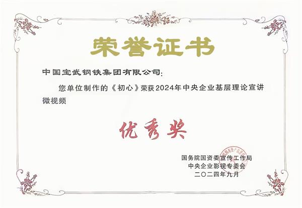 9月27日,2024年中央企業(yè)社會主義核心價值觀主題微電影(微視頻)展映發(fā)布儀式在北京舉行,由中國寶武選送、中鋼集團指導、中鋼洛耐拍攝的微視頻《初心》榮獲2024年中央企業(yè)基層理論宣講微視頻優(yōu)秀獎,這是該視頻繼榮獲“寶武好故事”后的又一殊榮,目前該視頻已經(jīng)入圍第七屆中央企業(yè)優(yōu)秀故事創(chuàng)作展示活動。
