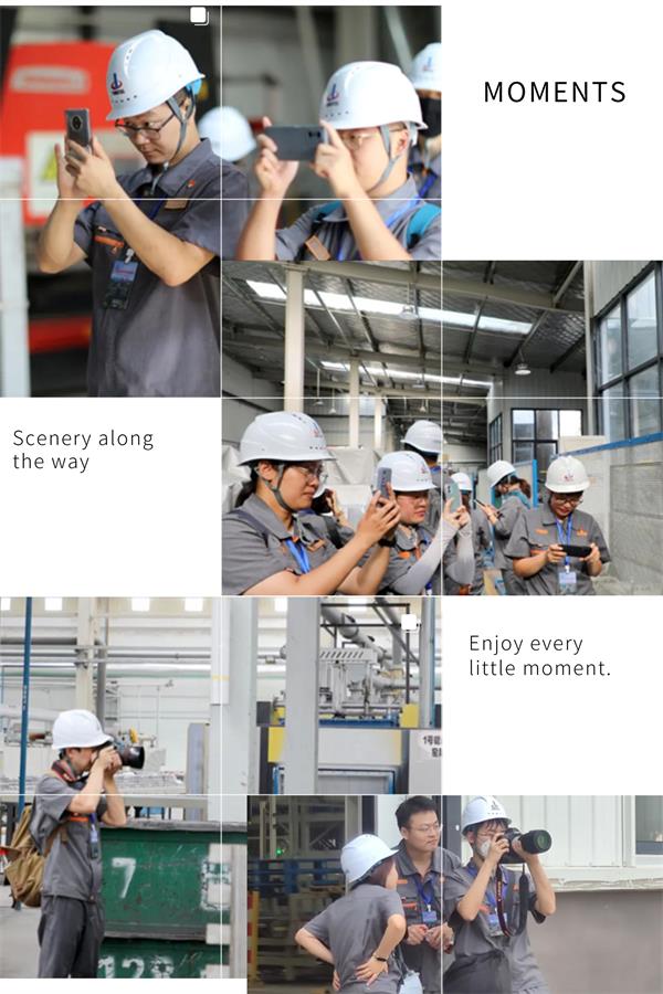來到生產一線、科研現場,各位采風人員的熱情立刻被點燃,立體式的倉儲系統、智能化的生產設備、包裝整齊的發運現場、專注的科研場景……采風人員紛紛拿出手機、相機,不斷調整參數設置、拍攝角度,或側身彎腰,或目光專注,不斷尋找著最佳光線,抓拍、錄制著一個個精彩瞬間。大家一邊創作一邊互相交流拍攝心得,用鏡頭記錄著中鋼洛耐干部職工勤勞奮斗的身影,定格一線員工安全規范操作、愛崗愛企的美好瞬間。