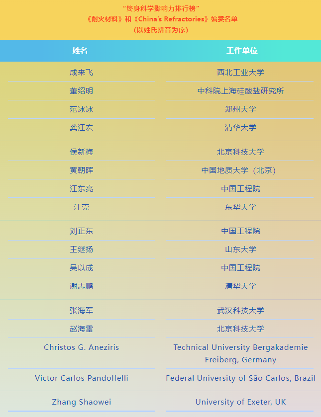 近日,美國斯坦福大學與國際學術出版社愛思唯爾聯合發布2025年全球前2%頂尖科學家榜單。由中鋼洛耐主管主辦的《耐火材料》和《China’s Refractories》兩刊在耐火材料領域表現亮眼,共有16位編委入選“終身科學影響力”榜單,20位編委入選“年度科學影響力”榜單。